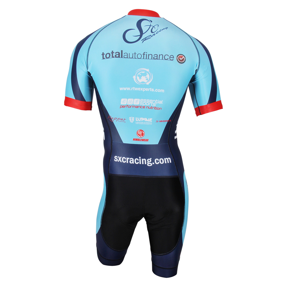 Fabrics: Swiss COLDBLACK AERO 195 gsm & Italian ACTION 225 gsm; Italian EIT ROAD PERFORMANCE CARBONIUM Chamois; Silicon Injected Power Band