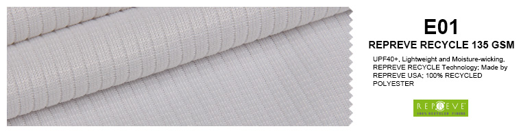 Fabric: REPREVE RECYCLE 135 gsm or COOL SOFT 140 gsm