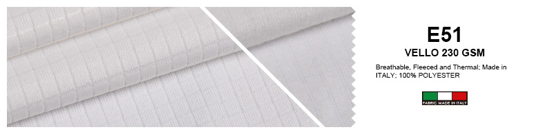 – Italian VELLO 230 gsm fabric for excellent breathable, fleeced and thermal characteristics