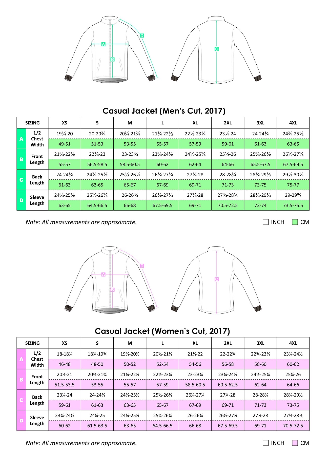 – Our size chart represents clothing sizes, not body measurements. We recommend