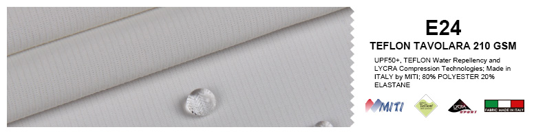 – 4 way stretch Italian TAVOLARA 180 gsm fabric main body, with Italian MATRIX 190 gsm fabric mesh side panels to improve ventilation